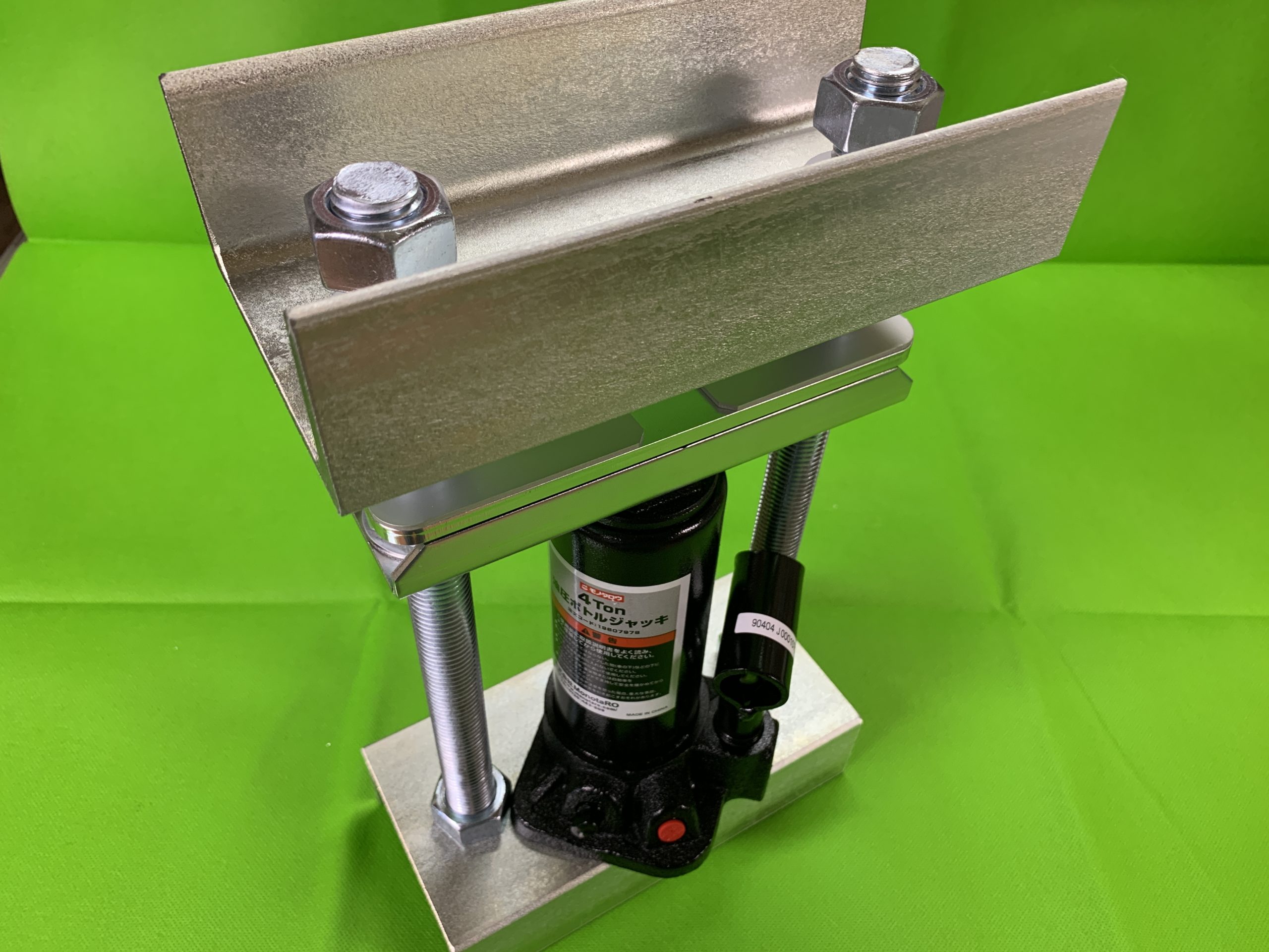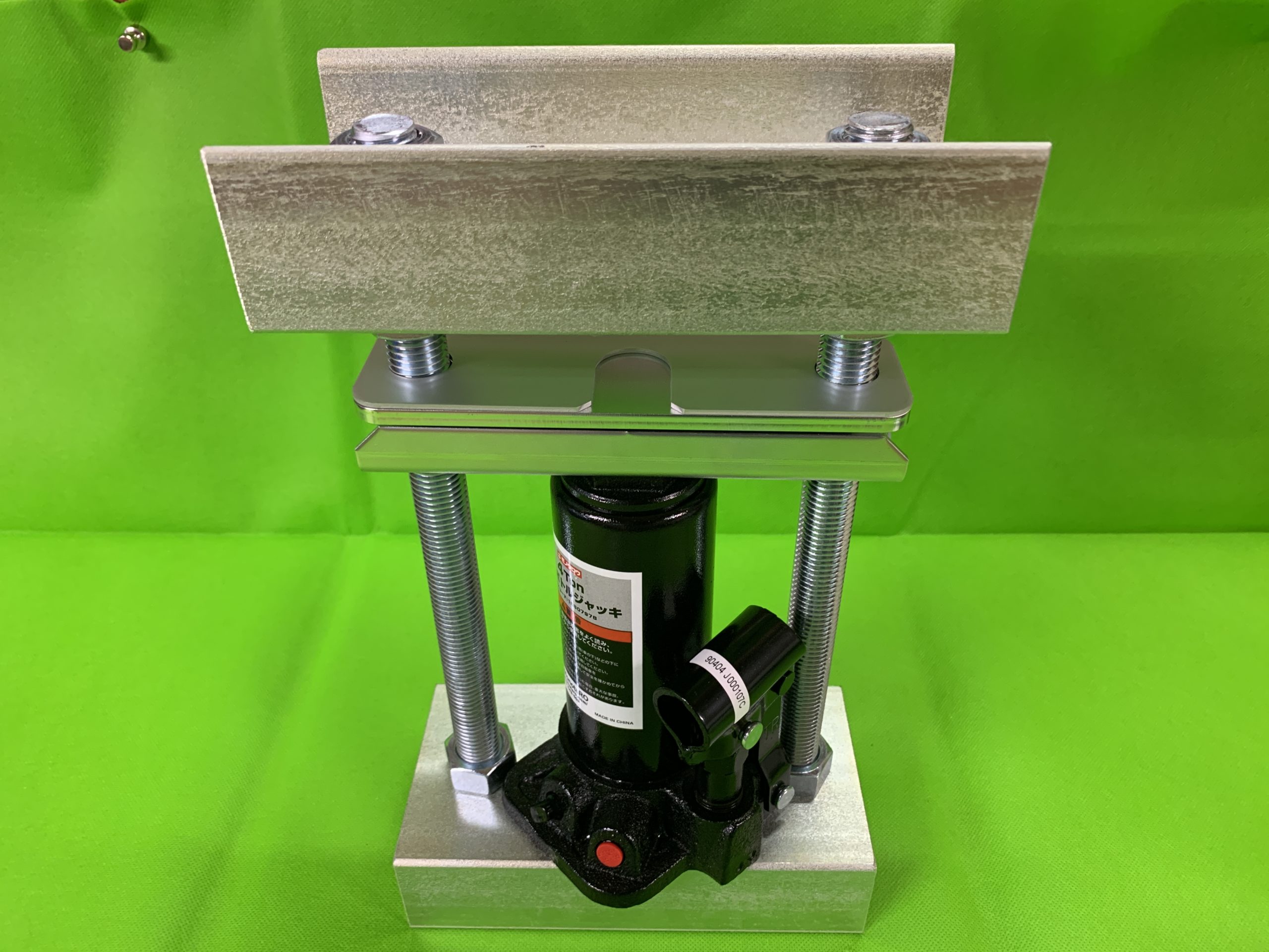 タッププレス治具です。 市販のシリンダー・オイルジャッキを使用します。 本製品は簡単な組み立て式(工具付)です…